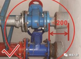 b.防護(hù)閥門設(shè)置離墻太遠(yuǎn)(錯誤做法):