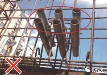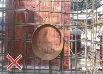 a. 由于前期未做好預(yù)埋,后期消防管線安裝時出現(xiàn)亂鉆孔現(xiàn)象(錯誤做法):