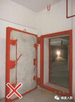 b.空調(diào)管道從防護(hù)門門洞穿過,阻礙防護(hù)門正常開啟(錯誤做法):