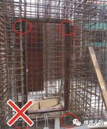 a.門框下門檻支撐在結(jié)構(gòu)主筋上門框支撐未形成三角形支撐(錯誤做法):
