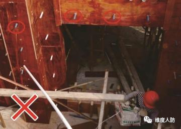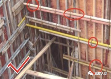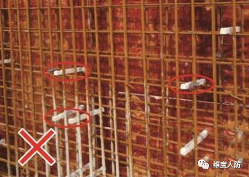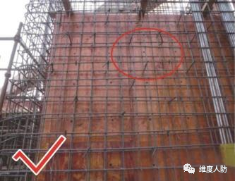 《人民防空工程質(zhì)量驗收與評價標(biāo)準(zhǔn)》(RFJ01-2015) 第 6.4.2 條:外墻、臨空墻、門框墻、防護(hù)密閉隔墻和密閉隔墻的模板安裝,其固定模板的對拉螺栓上嚴(yán)禁采用套管、混凝土預(yù)制件等。