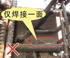 a. 鋼門框與門框墻之間應(yīng)有足夠的連接強(qiáng)度,相互連成整體;錨固鉤需雙面焊接,焊縫飽滿。(錯誤做法):