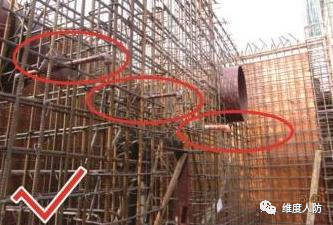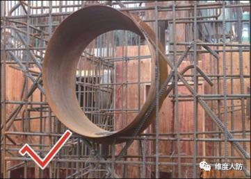 b. 按要求在孔洞口加設(shè)加強(qiáng)鋼筋(正確做法):