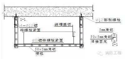 3.線槽橋架在跨越防火分區(qū)及線槽穿樓板的部位做防火封堵處理。封堵板用2mm厚防火板,具體做法如圖所示:
