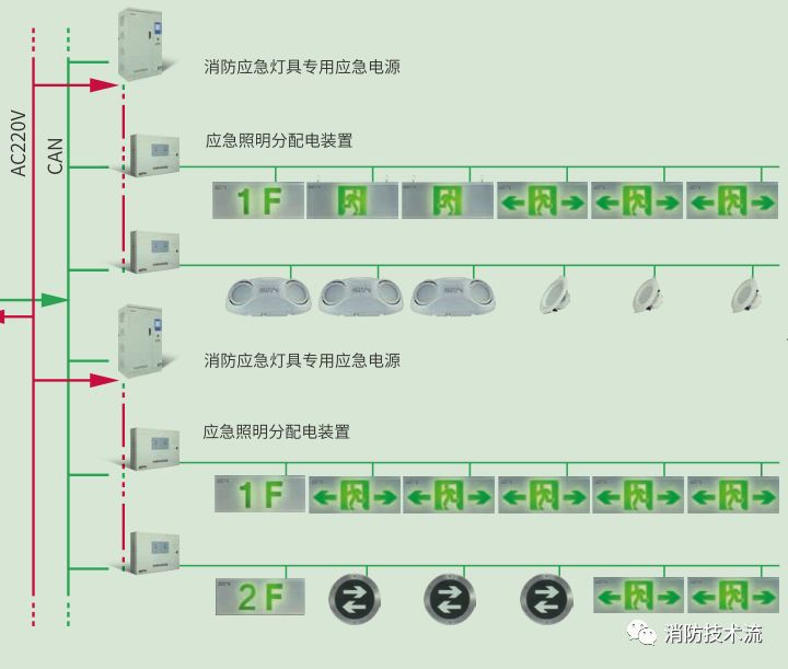 智能應(yīng)急照明和疏散指示系統(tǒng),即集中電源集中控制系統(tǒng),由應(yīng)急照明和疏散指示控制器、樓層分配電裝置、消防應(yīng)急燈具、疏散指示燈具等組成。根據(jù)《消防應(yīng)急照明和疏散指示系統(tǒng)技術(shù)標(biāo)準(zhǔn)》GB51309-2018規(guī)定,設(shè)置消防控制室的場所應(yīng)選擇集中控制型系統(tǒng);設(shè)置火災(zāi)自動報警系統(tǒng),但未設(shè)置消防控制室的場所宜選擇集中控制型系統(tǒng)。
