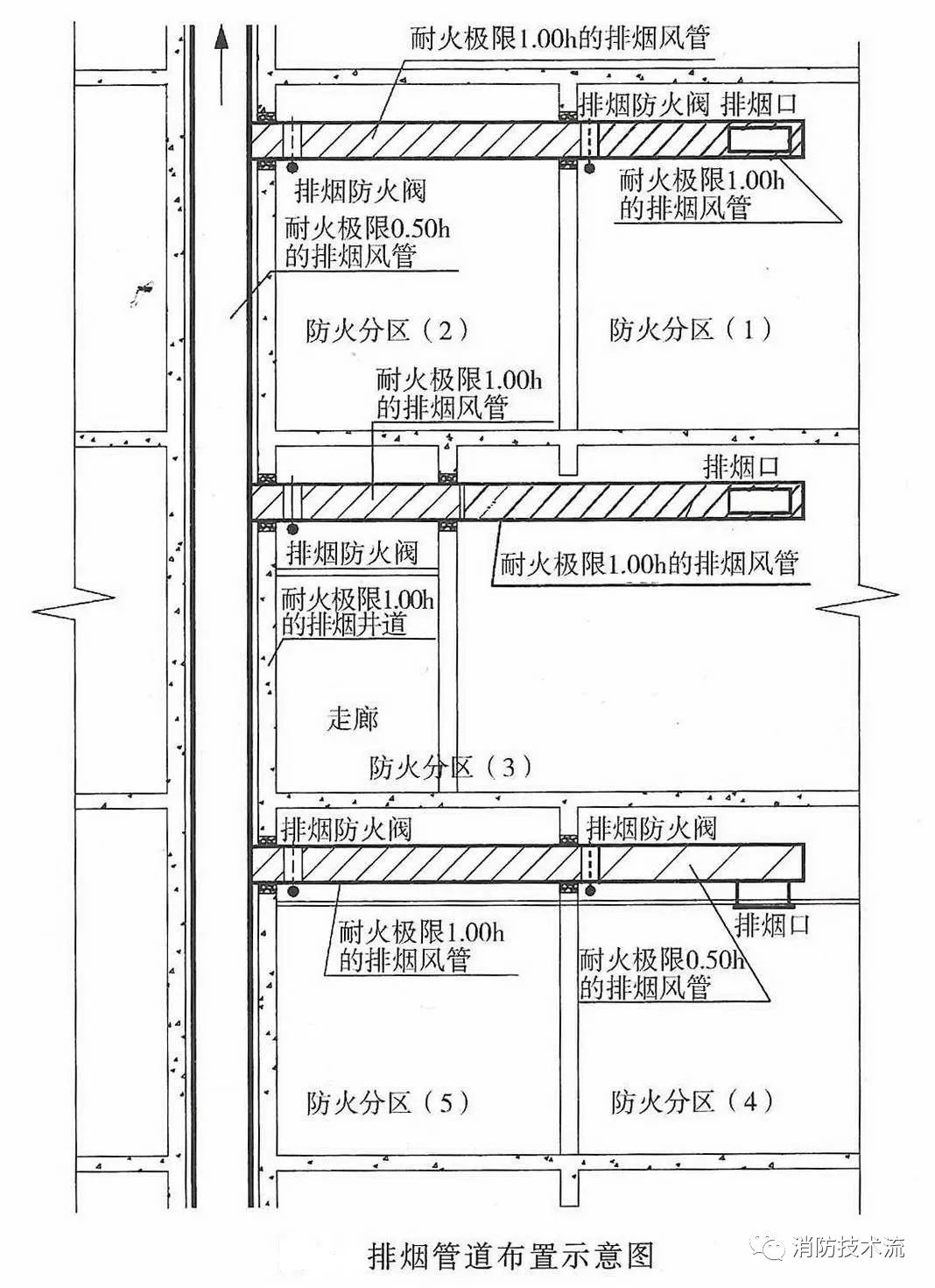 二、排煙管道的設置和耐火極限應符合下列規定: