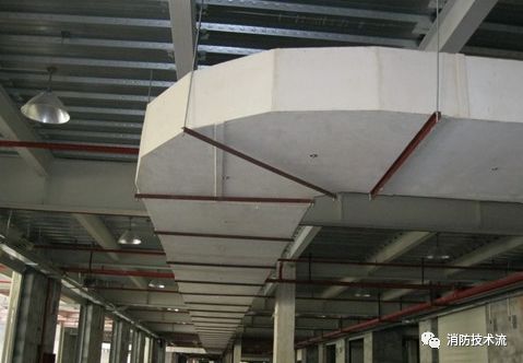 2、耐火極限不小于0.5h的風管(如車庫排煙管、消防補風風管、前室吊頂內的加壓風管),外表面均勻刷防火漆涂料3遍。
