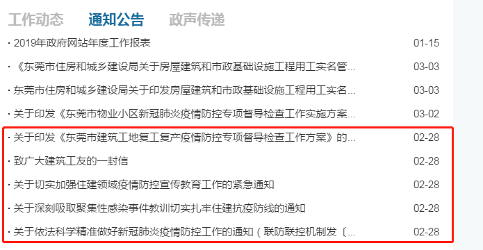 為了嚴防該類事件再次發生,2月28日東莞市住建局連發5份相關通知。