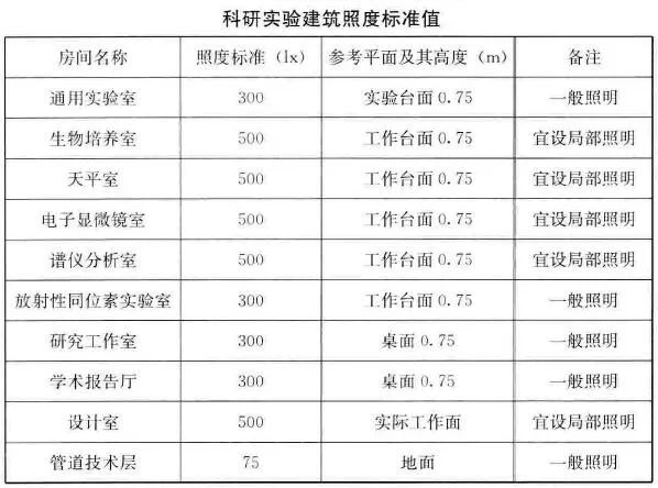 1、科研實驗用房,工作面上的平均照度標準應符合下表的規(guī)定。