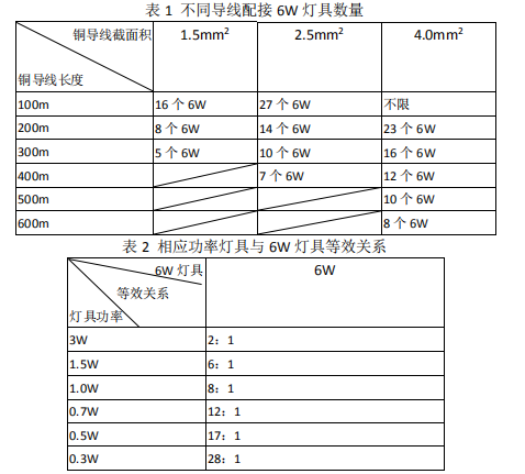 的 ZRRVS 線,各種分配電裝置每個(gè)支路線路長(zhǎng)度和配接燈具數(shù)量應(yīng)滿足下表要求。