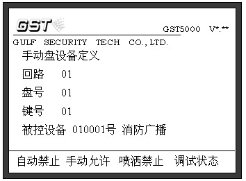 為快速定義海灣手動盤按鍵和查詢手動盤按鍵的定義內容,本控制器提供了“手動盤定義”功能。選擇設備定義選擇菜單中的第2項,則進入手動盤定義菜單,液晶屏如圖5-14所示。
