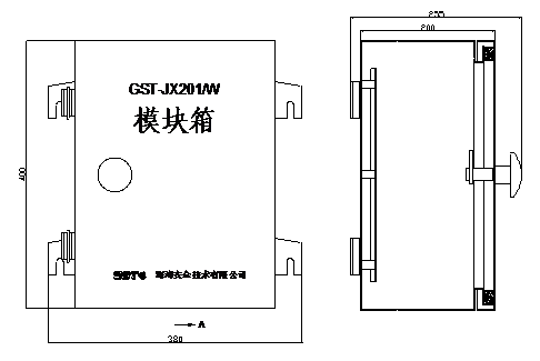 GST-JX201/W模塊箱外形示意圖如圖2- 56所示。GST-JX202/W~GST-JX205/W模塊箱除尺寸外,其外形結構與GST-JX301模塊箱相同。