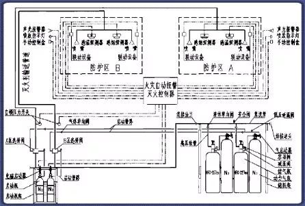 該系統由滅火劑儲存裝置、總控閥、驅動器、噴頭、管道超壓泄放裝置、信號反饋裝置、控制器等組成。