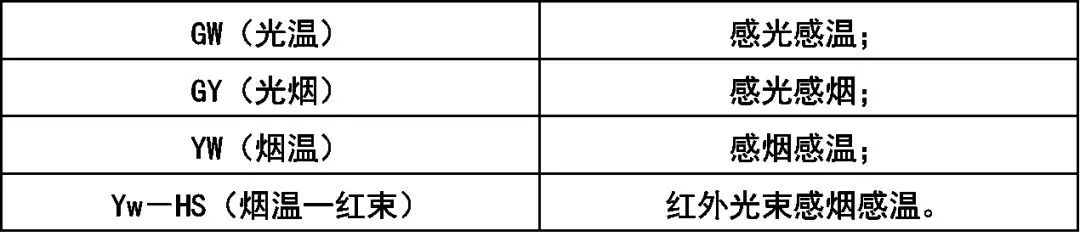 火災探測器分類代號: