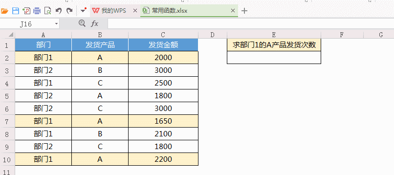 ▲舉例:求某部門某產品發貨次數