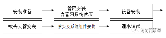 (1)噴淋系統(tǒng)安裝完成后應(yīng)整體通水使系統(tǒng)達(dá)到正常的工作壓力以備調(diào)試。