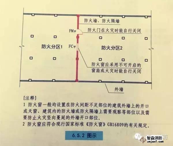 6.5.2設(shè)置在防火墻、防火隔墻上的防火窗,應(yīng)采用不可開啟的窗扇或具有火災(zāi)時(shí)能自行關(guān)閉的功能。