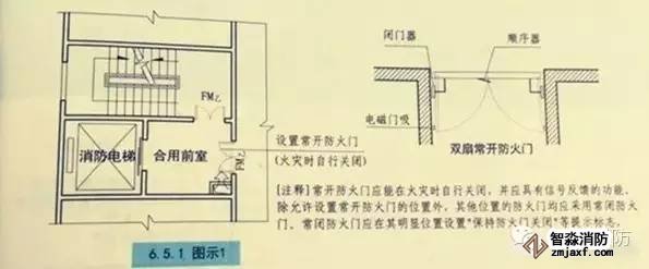 1.設(shè)置在建筑內(nèi)經(jīng)常有人通行處的防火門宜采用常開防火門。常開防火門應(yīng)能在火災(zāi)時(shí)自行關(guān)閉,并應(yīng)具有信號(hào)反饋的功能。【圖示1】