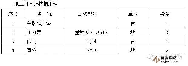 5.1.1試壓用的機(jī)具及技措用料見所附的機(jī)具及技措用料表;