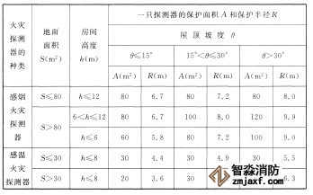 (2)感煙火災探測器和A1、A2、B型感溫火災探測器的保護面積和保護半徑,應按表2確定;C、D、E、F、G型感溫火災探測器的保護面積和保護半徑,根據生產企業設計說明書確定,但不應超過表2的規定。