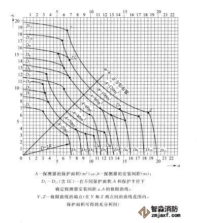 (3)感煙火災探測器、感溫火災探測器的安裝間距,應根據探測器的保護面積A和保護半徑R確定,并不應超過附錄三探測器安裝間距的極限曲線所規定的范