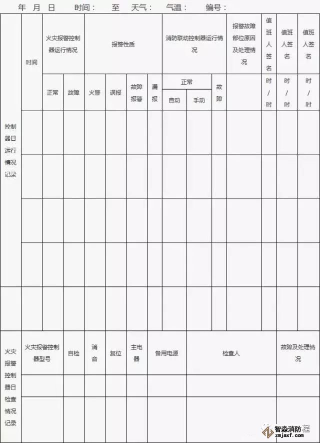 2、消防控制室值班人員應當在崗在位,認真記錄控制器日行情況,每日檢查火災報警控制器的自檢、消音、復位功能以及主備電源切換規能,并填寫附表的相關內容。