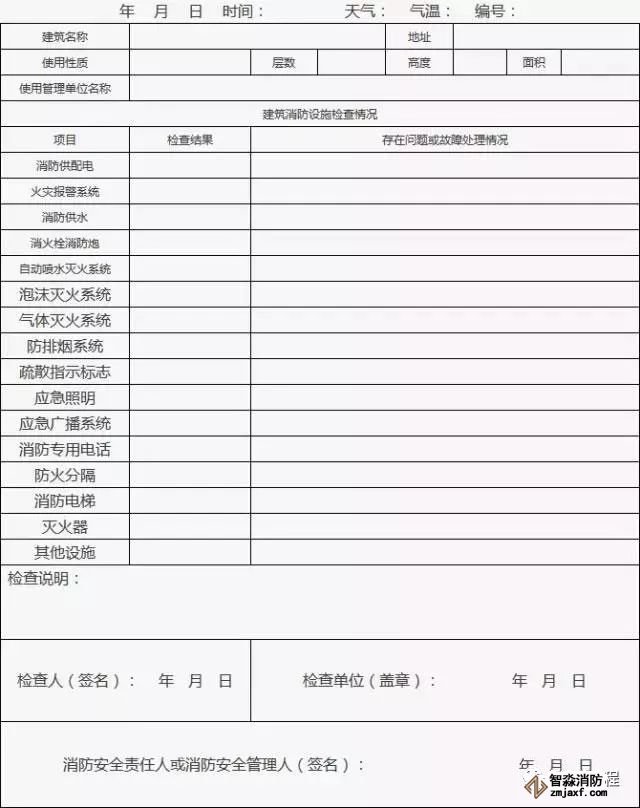 2、檢查發現建筑消防設施存在問題和故障的,實施檢查的人員必須向單位消防安全管理人報告,并填表。