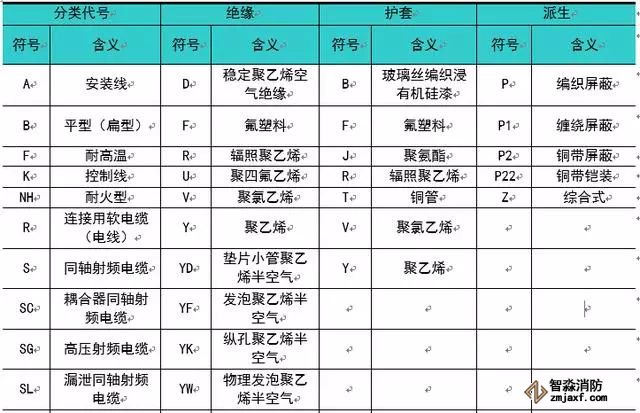消防弱電線纜型號字母代號及含義