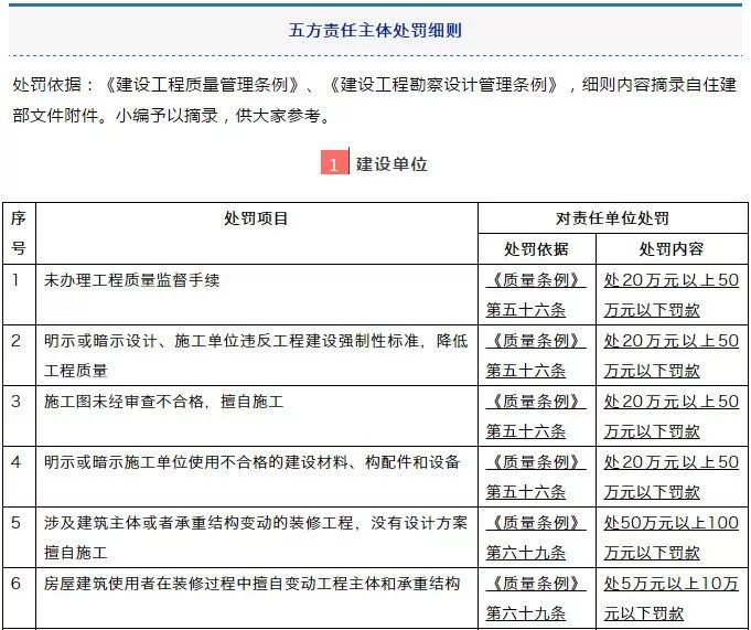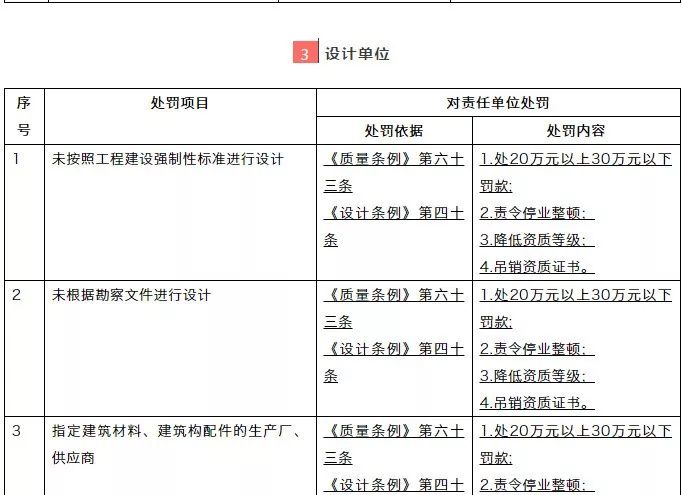 處罰依據:《建設工程質量管理條例》、《建設工程勘察設計管理條例》,細則內容摘錄自住建部文件附件。小編予以摘錄,供大家參考。