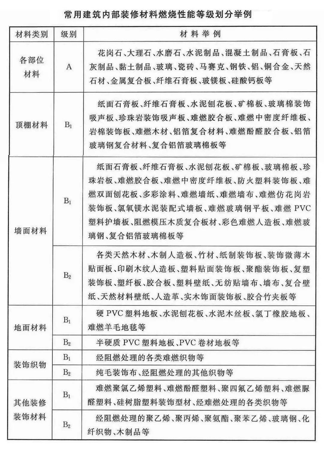 建筑用途、場所、部位不同,所使用裝修材料的火災危險性不同,對裝修材料的燃燒性能要求也不同。