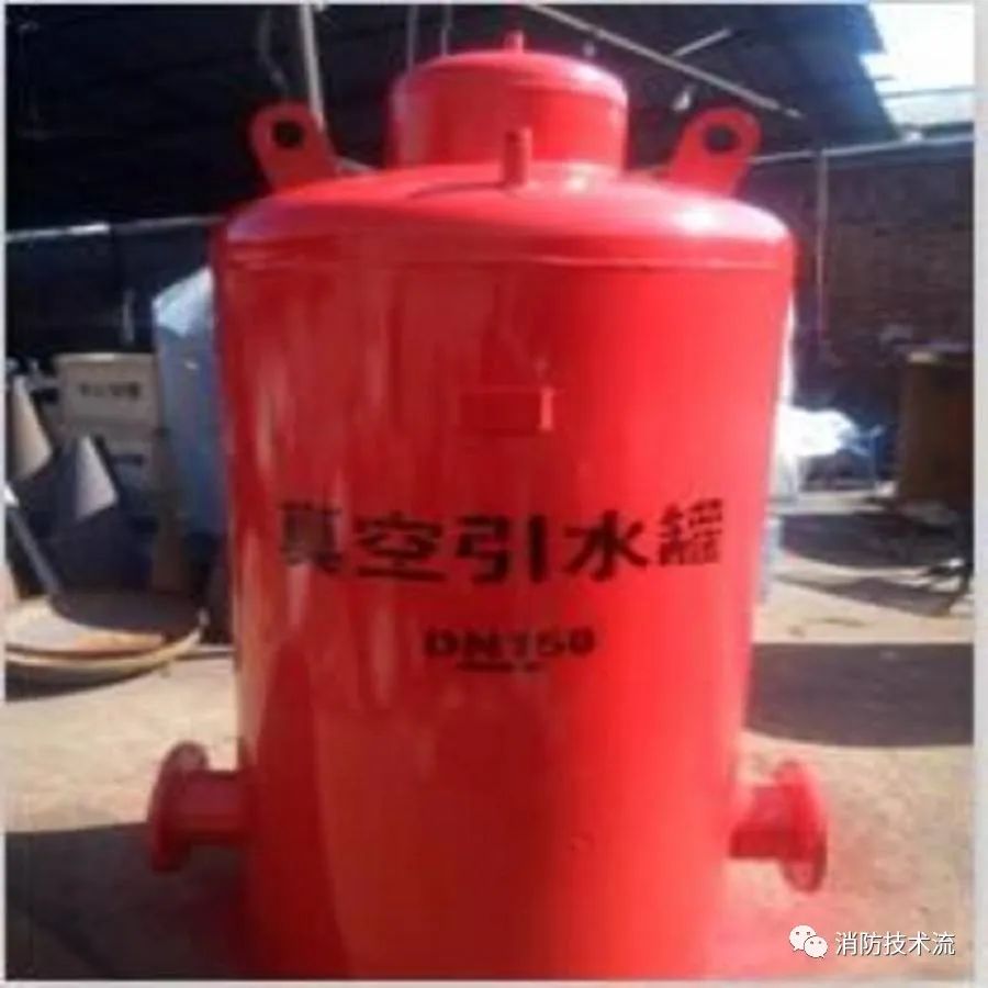 一些老舊建筑的改造,受面積或位置原因?qū)е孪浪貌荒軐?shí)現(xiàn)自灌式吸水,比如消防水泵只能安裝在消防水池的上蓋,此時(shí)水泵的吸水管只能向下伸入水池的水位中,造成吸水管一段管道無(wú)水,這種情況消防水泵在啟動(dòng)時(shí)不能吸上水,而這樣的例子并不少見(jiàn),以下介紹的真空罐(也稱(chēng)負(fù)壓罐)是解決這個(gè)問(wèn)題的一種方式。