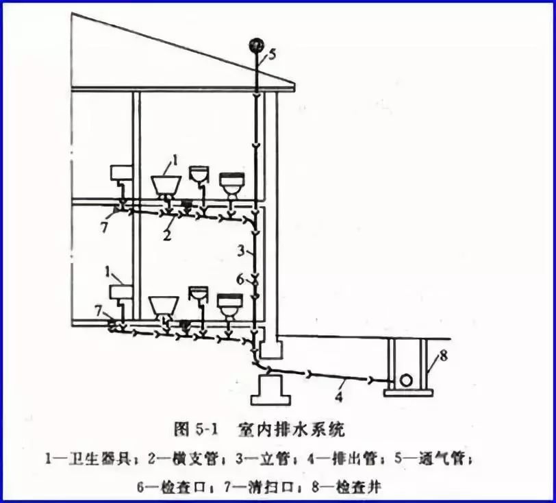 由連接衛生器具的排水管道,有一定坡度的橫支管、立管、埋設在室內地下的總橫干管和排出到室外的排出管等組成。