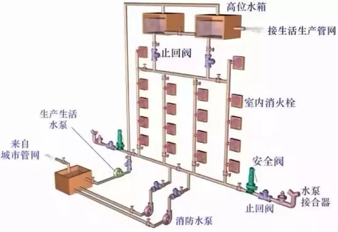 自動噴水滅火系統的種類較為多樣,但無論哪種類型,自動噴水滅火系統的組成一般包括:水源、加壓貯水設備、噴頭、管網系統、報警裝置。