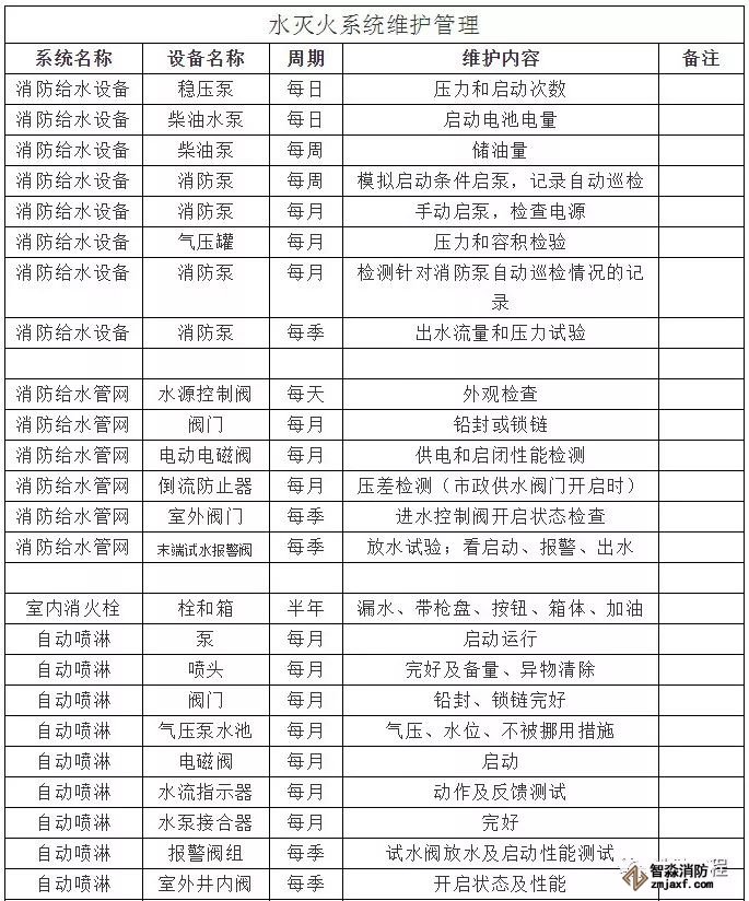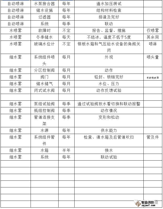 消防水滅火系統(tǒng)維護保養(yǎng)管理周期表格
