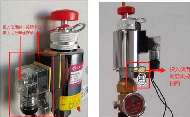 電磁驅(qū)動(dòng)裝置上裝有插銷(xiāo),是為了防止在運(yùn)輸、安裝、調(diào)試過(guò)程中碰撞、震動(dòng)使閘門(mén)誤動(dòng)作。在現(xiàn)場(chǎng)安裝完畢,投入使用前必須抽出安全插銷(xiāo),否則閥門(mén)將打不開(kāi)。