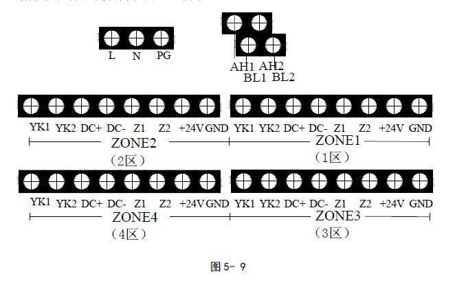 1)各區通信總線(Z1,Z2)和電源輸出(+24V,GND)連接線應選用截面積≥1.0mm2 的雙絞線,長不超過500m,導線電阻應小于5Ω。