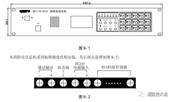 GST-TS-Z01A型消防電話總機外形尺寸及結構示意圖如圖 6- 1 :