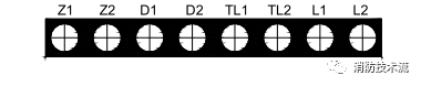 TL1、TL2:消防電話線,與消防電話接口連接的端子。端子 XT1 電話線輸入端,端子 XT2 電話線輸出端,接下一個電話插孔,最末端電話插孔 XT2 接線端子接 15kΩ終端電阻